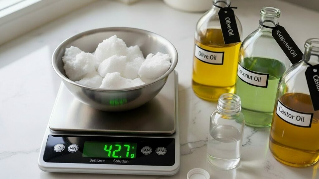 ⚠️ Never guess lye amounts. Never use volume measurements.